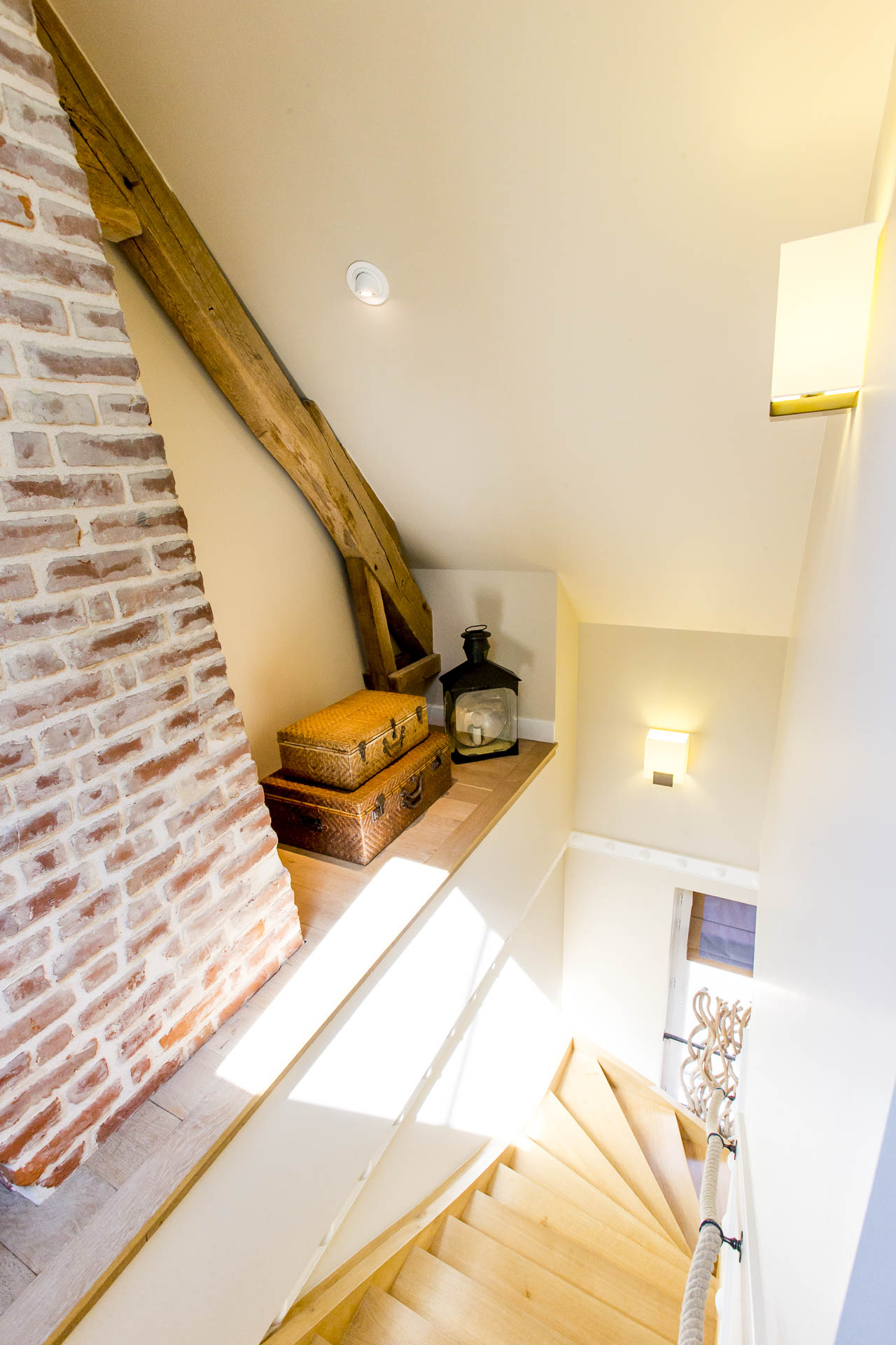 La BourdonnaisAu rez-de-chaussée de cette ancien édifice industriel du XIXe siècle se trouve l’espace cuisine, salle à manger et salon. Coté cuisine le sol en terre cuite, les poutres et les stores, contrastes avec le mobilier et l’électroménager dés plus modernes. Il en va de même pour le salon et la salle à manger qui associent luminaires contemporains ( ? ? ? ) et meubles de style chinés. Toujours au rez-de-chaussée l’escalier en fonte de style industriel que nous avons fait réaliser sur mesure par rappelle les lofts New-Yorkais des bords de l’Hudson.